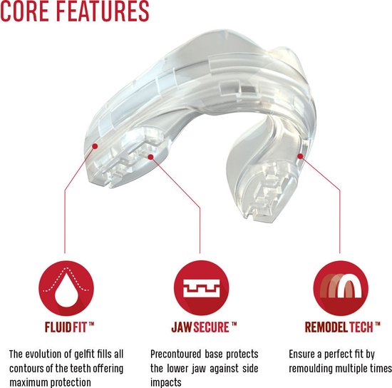 - Speciaal voor beugeldragers- Fluid fit voor een perfecte pasvorm- Jaw Secure voor optimale bescherming- Remodel Tech - tot 3x hervormen van je beschermer